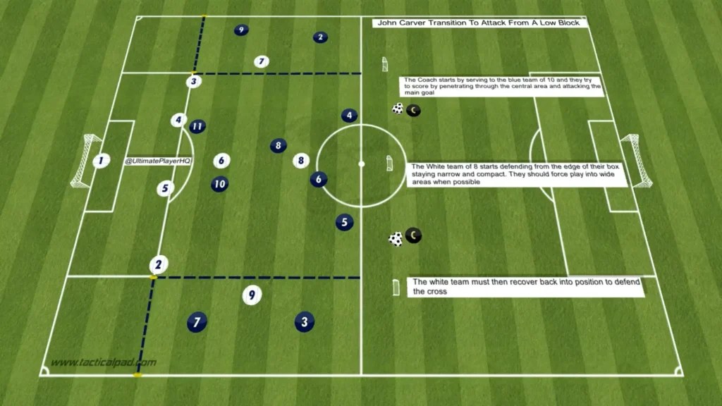 Transición de John Carver al ataque desde un bloque bajo